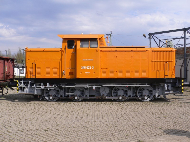 diesel locomotive 345 072-3| Builder: | LEW Henningsdorf | | Type: | V 60 | | Constructed: | 1977 | | Works number: | 15603 | | Power output: | 650 PS | | Maximum speed: | 60 km/h | | State: | Exhibit |
