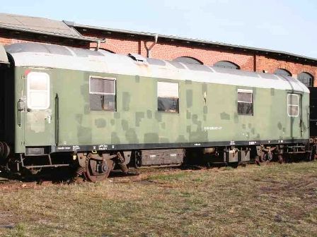 wagon WohnschlafwagenDieser Wohnschlafwagen wurde unter der 1955 von Talbot in Aachen gebaut. Er wurde unter der Nummer Köln 6202 von der Deutschen Bundespost mit der Gattung 2-a/14, also 2achsiger Bahnpostwagen mit 14 Metern Länge verwendet. Der Wagen enthielt zwei Briefräume und einen Aussackraum. Später wurde er zu einem Begleiterwagen der Firma Interfrigo umgebaut. Er diente als Unterkunft des Begleitpersonals der Maschinenkühlzüge, die zwischen den Seehäfen der Nordseeküste und Südosteuropa, sogar bis in den Iran und Pakistan, liefen. | |||