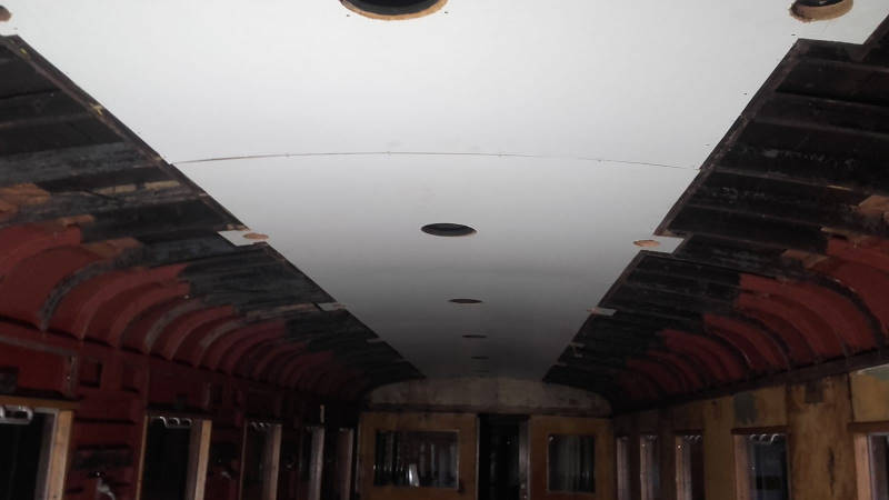 It is also worth mentioning that the refurbishment of our sidecar 197 805 is making noticeable progress. Now that the windows have been replaced, the new interior panelling can be fitted and installed. Here are two pictures of the progress: