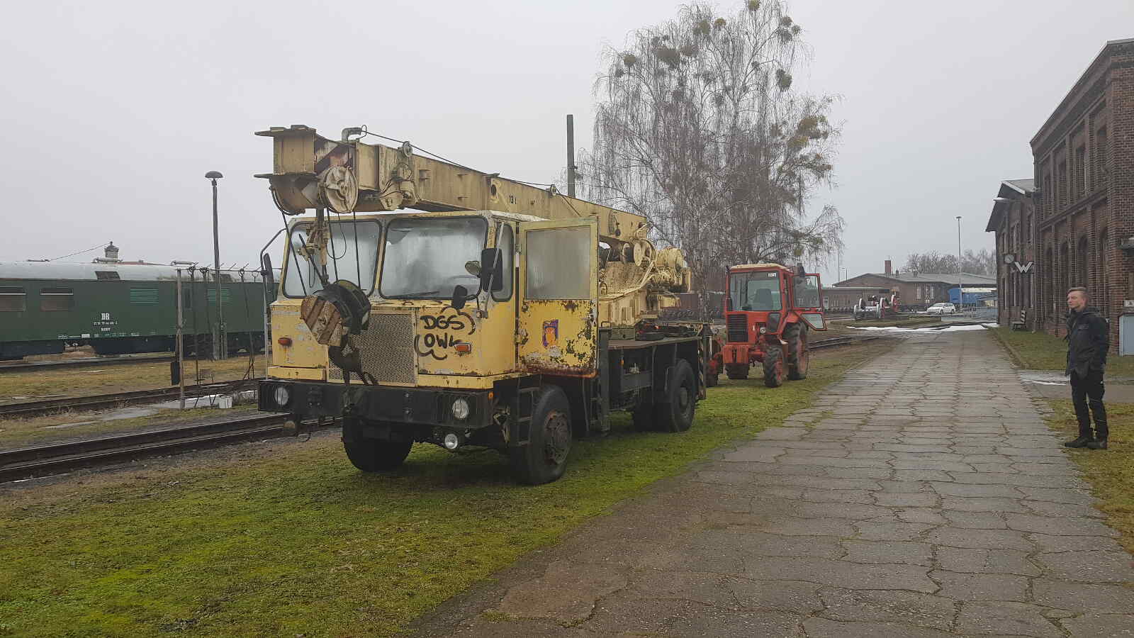 The necessary manoeuvring work for this was carried out by a Soviet-made Mts 572 tractor. It was manufactured in Minsk in 1990 and its engine has an output of approx. 60 hp. A colleague kindly stationed it in Wittenberge for our internal transport needs.