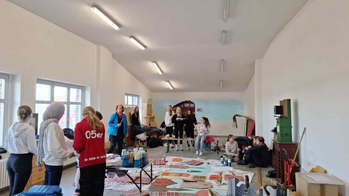 But even after the event, there is still plenty going on in the museum: a group of pupils from the Marie Curie Gymnasium are giving us a very special treat by designing some of the walls in our future exhibition space as part of an art project. They are painting railway motifs from Wittenberge on the walls based on photographs. We are thrilled and would like to say thank you for the fantastic motifs.
