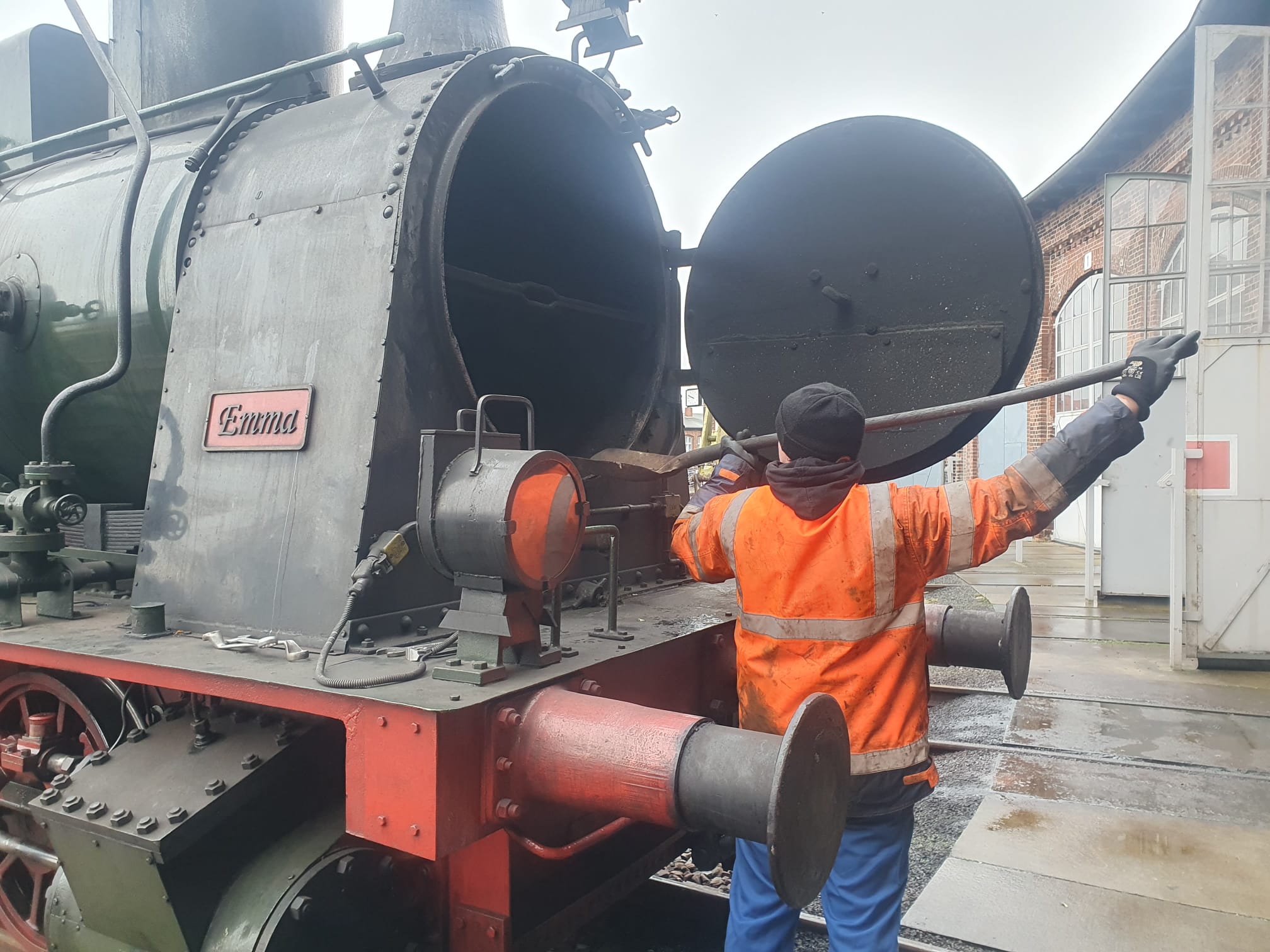 Our steam locomotive Emma also needs maintenance. Here the firebox, ash pan, smoke chamber and boiler tubes have been thoroughly cleaned.