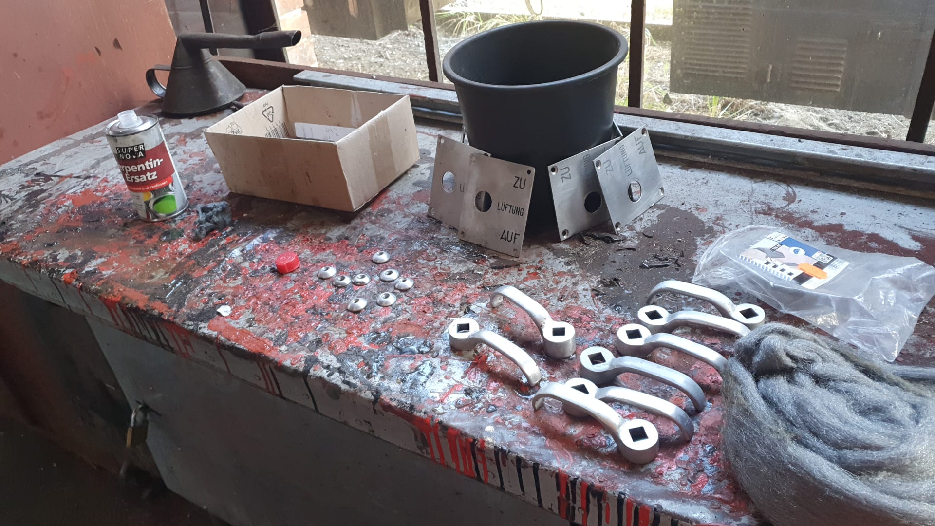 Work is also being done on the exterior appearance of the tender. The remaining paint has been sanded or completely removed so that a primer coat can be applied soon. We hope that the outside temperatures will remain in the double-digit range for a little longer so that we can apply the final coat of black paint before the winter cold sets in.