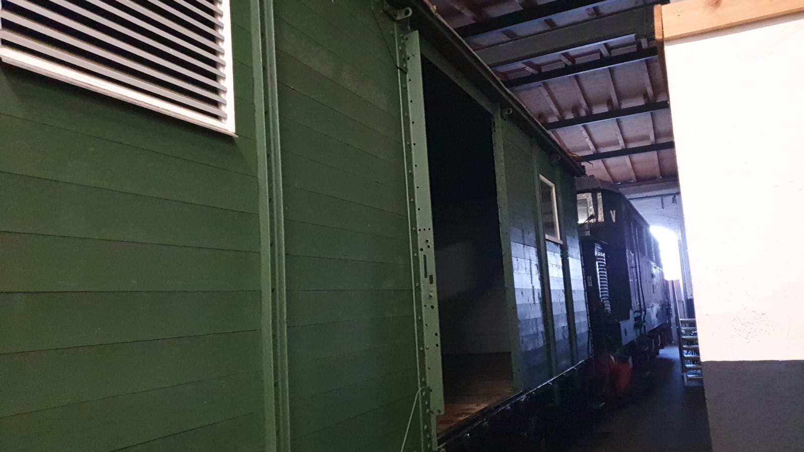 Our type G10 goods wagon is now also entering the final phase of completion. Our colleagues have thoroughly refurbished it in painstaking detail. The axles and suspension were removed and overhauled and most of the wooden parts were rebuilt. Finally, the metal frame of the second side door was straightened and repainted so that the wooden panelling can now be fitted. Once the door has been fitted and the car has been labelled, it will be ready for display.