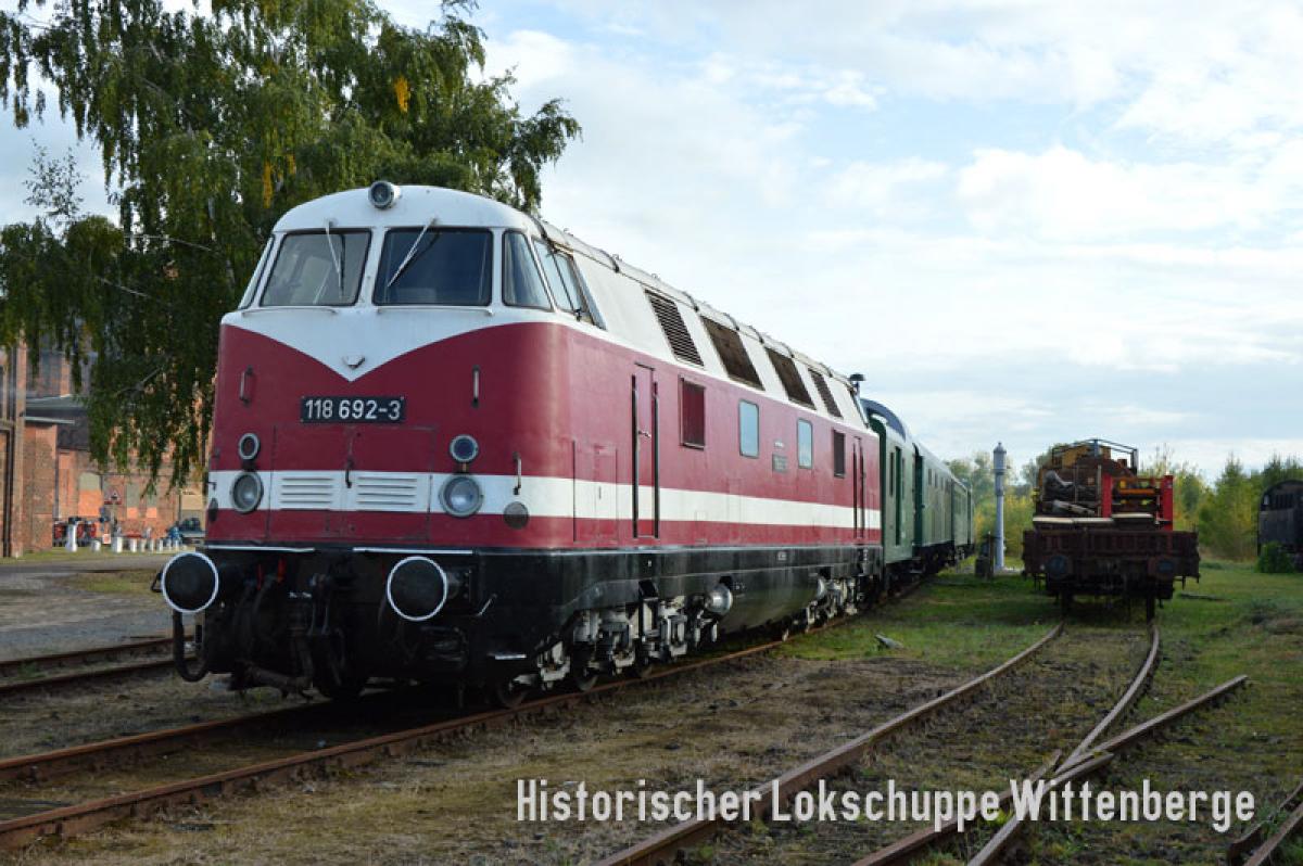 Die Diesellok 118 692-3 haben wir in unsere Sammlung aufgenommen, weil sie zu einer der typischen Bauarten gehört, die die Dampfloks in der Altmark zu Beginn der achtziger Jahre abgelöst haben. Inzwischen gehört auch sie schon zum alten Eisen und so ging es im Jahr 1997 nur um Tage, um sie vor der Verschrottung zu bewahren. Nachdem die Deutsche Bahn AG sich bereiterklärt hatte, uns diese Lok als Dauerleihgabe zur Verfügung zu stellen, haben wir sie von einem Abstellplatz in Wittenberg geborgen und inzwischen in Salzwedel äußerlich aufgearbeitet.