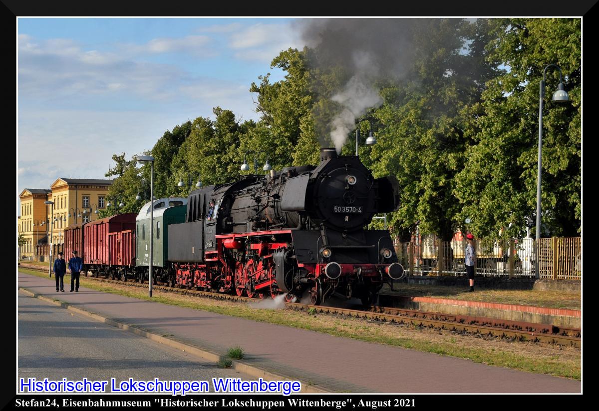 Die Dampflok 50 3570-4 wurde 1942 als eine von mehreren Tausend ihrer Baureihe in Dienst gestellt. Seinerzeit trug sie die Nummer 50 2308. Nach dem Einsatz in der Lokkolonne verblieb sie in der DDR und wurde Ende der 1950er Jahre grundlegend rekonstruiert. Dabei erhielt sie einen neuen fabrikneuen Kessel und trug seitdem die Betriebsnummer 50 3570.