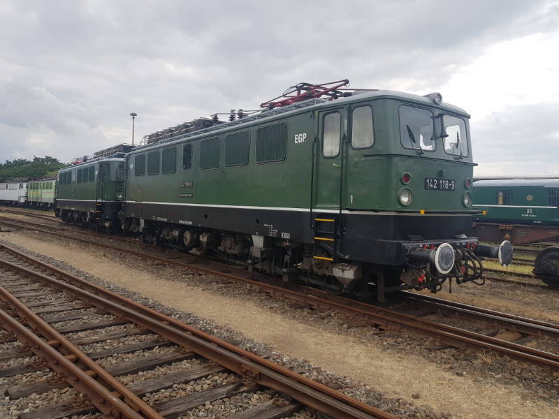 Outside there were many vehicles to be admired. For example, the Potsdam railway company had provided two class 142 electric locomotives for the exhibition.