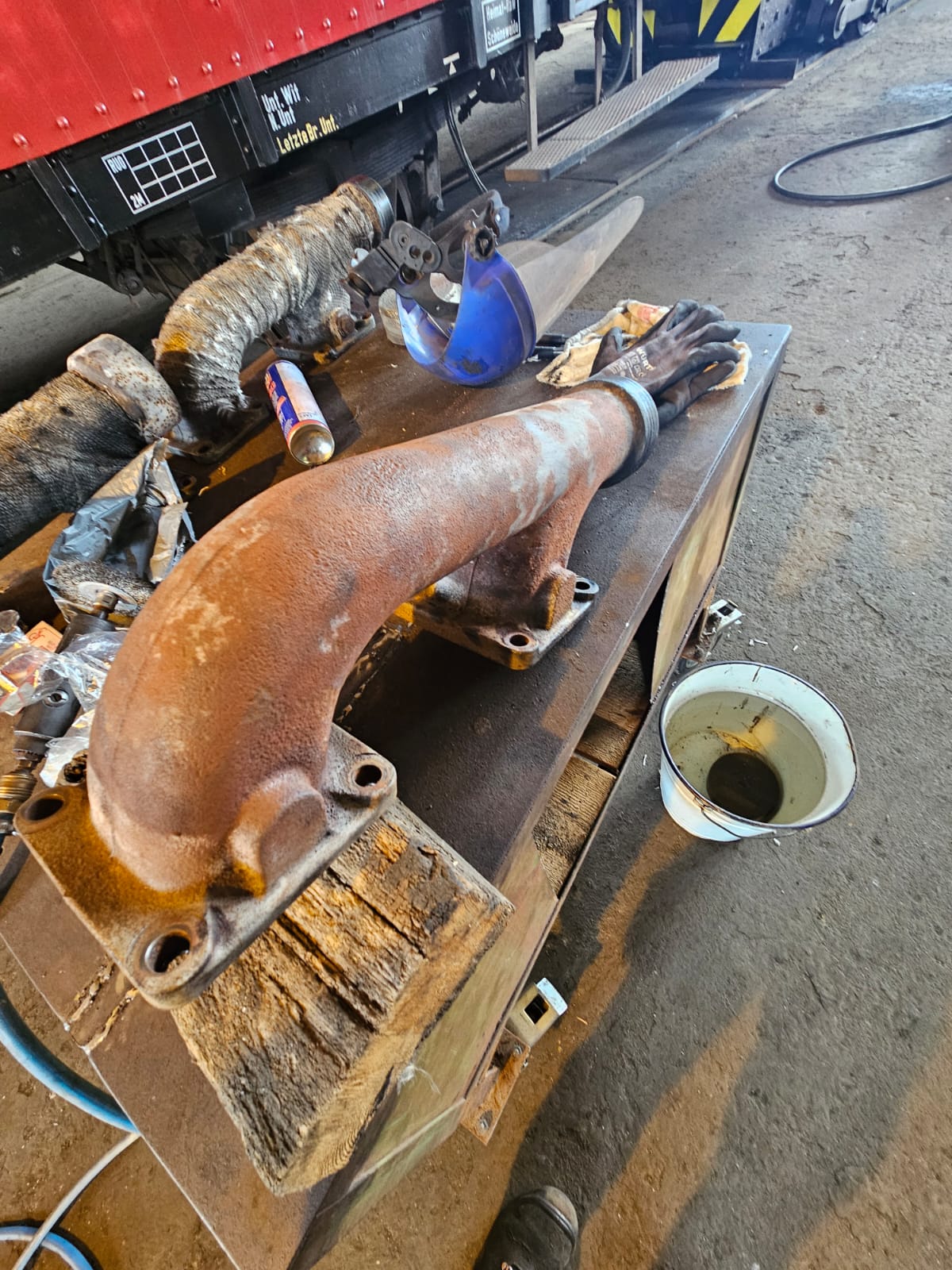 Liebe Freunde unseres Museums, nun ist es mal wieder Zeit, über den aktuellen Stand der Entwicklungen im Historischen Lokschuppen zu berichten. Unsere Diesellok 114 774 wird gerade einer großen Motorrevision unterzogen. Dazu wurde die Auspuffanlage, die Vorratsbehälter für das Kühlmittel und der Turbolader ausgebaut, um sie zu reinigen und zu warten. Im Moment befinden sich die ausgebauten Teile und die Haube des Motorvorbaus im Lokschuppen und können so besser begutachtet und bearbeitet werden. Wir freuen uns umso mehr, dass sich unsere Jugendlichen für das Projekt begeistern konnten. Hier lernen sie "unter Aufsicht erfahrener Kollegen" den Aufbau des Dieselmotors, seine Funktionsweise und die ganzen Kleinigkeiten, die so einen Motor erst rund laufen lassen. Sie freuen sich natürlich, wie wir alle, auf den Tag, an dem sich die Lok wieder aus eigener Kraft bewegen wird. Das wird noch ein bisschen dauern, aber wir sind zuversichtlich.