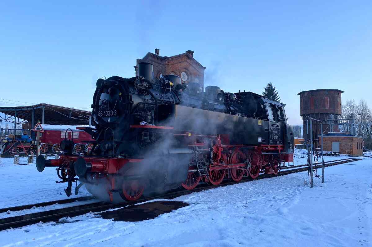 Wieder mal ist ein Jahr vergangen und wieder mal fragt man sich, wo die Zeit geblieben ist. Für uns war das Jahr jedenfalls sehr abwechslungsreich und spannend. Wir haben viele schöne Veranstaltungen im Jahr 2023 durchgeführt und viele, viele Gäste in unserem Museum begrüßen dürfen. Toll, dass Sie uns besucht haben. Inzwischen hören wir immer häufiger, dass Gäste uns ihren Freunden und Bekannten weiterempfehlen. Vielen Dank auch dafür! Das macht uns ziemlich stolz und bestätigt uns, dass wir offenbar auf dem richtigen Weg sind. Nun kehrt auch im Museum ein wenig Weihnachtsruhe ein. Unsere Gastlokomotive 86 1333 ist von ihrem letzten Einsatz auf der Heidekrautbahn bei Berlin wohlbehalten wieder in Wittenberge angekommen und verbringt nun die nächsten Wochen und Monate unter Dach bei uns.