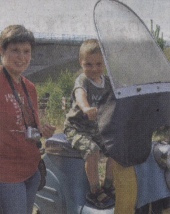 Jan Niklas nahm auf einer zur Draisine umgebauten Schwalbe Platz, Mama Doreen machte Fotos. |